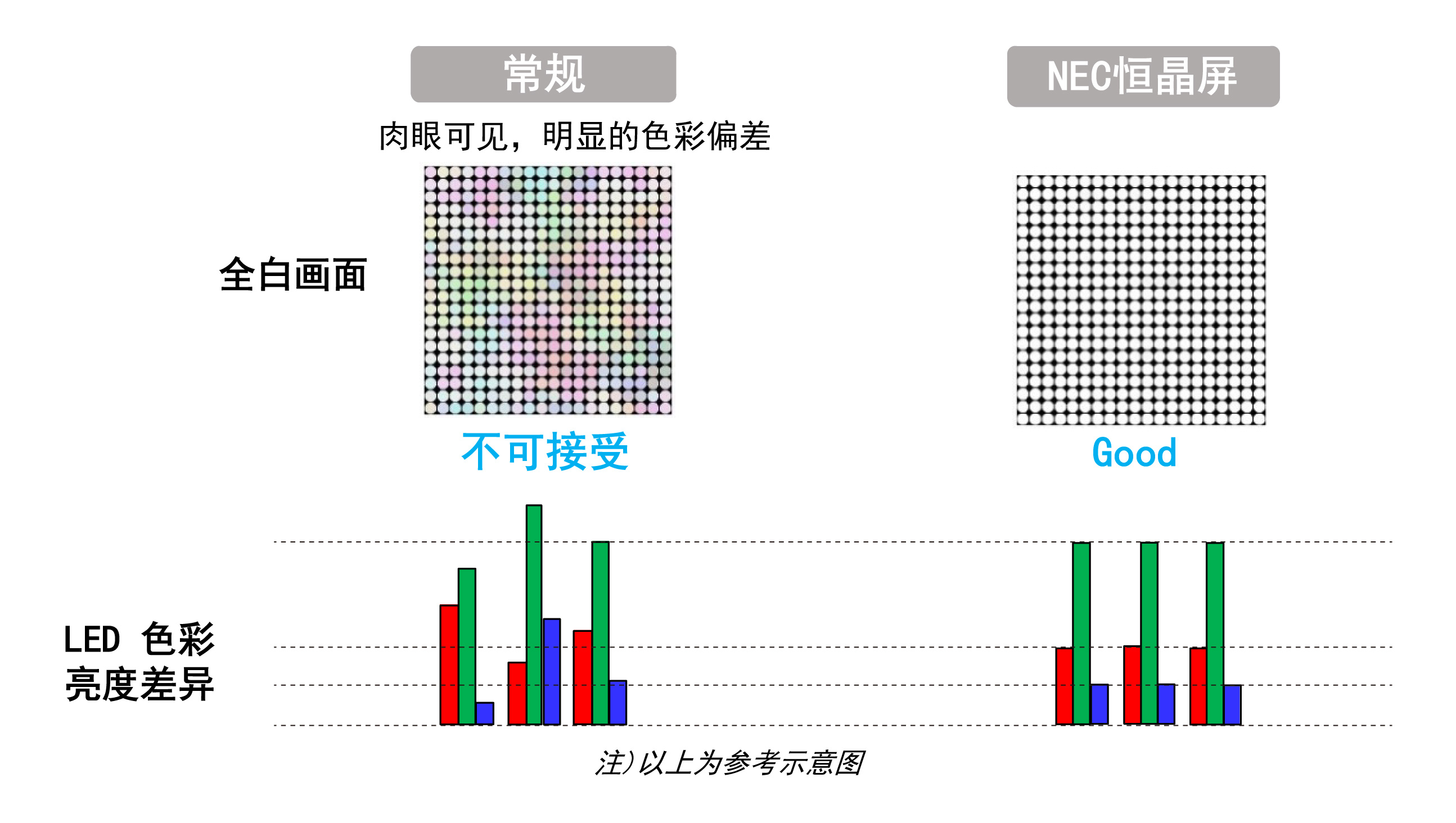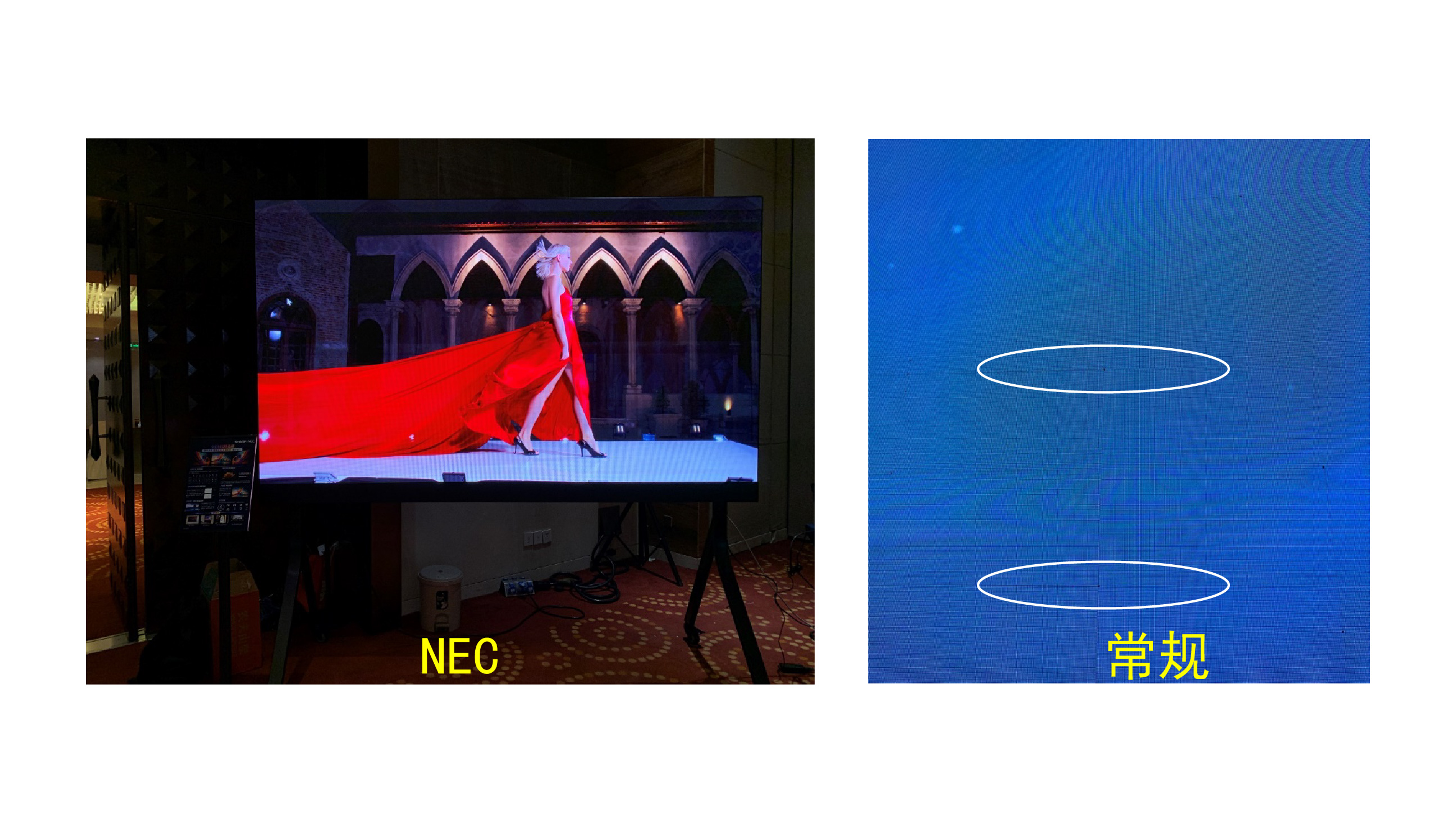 NEC恒晶屏采用全倒裝COB和SMD封裝技術,覆蓋0.9-3.8mm點距產品,亮度高達1200cd/㎡。