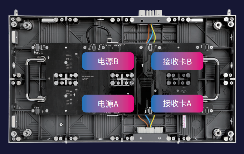 當電源A失效時,電源雙冗余供電設計可自動切換到電源B,繼續提供供電;信號接收卡雙環路備份設計則是當接收卡A發生故障時,備用接收卡B可以繼續提供影像,避免出現黑屏。雙備份設計,運行無憂,安全可靠。