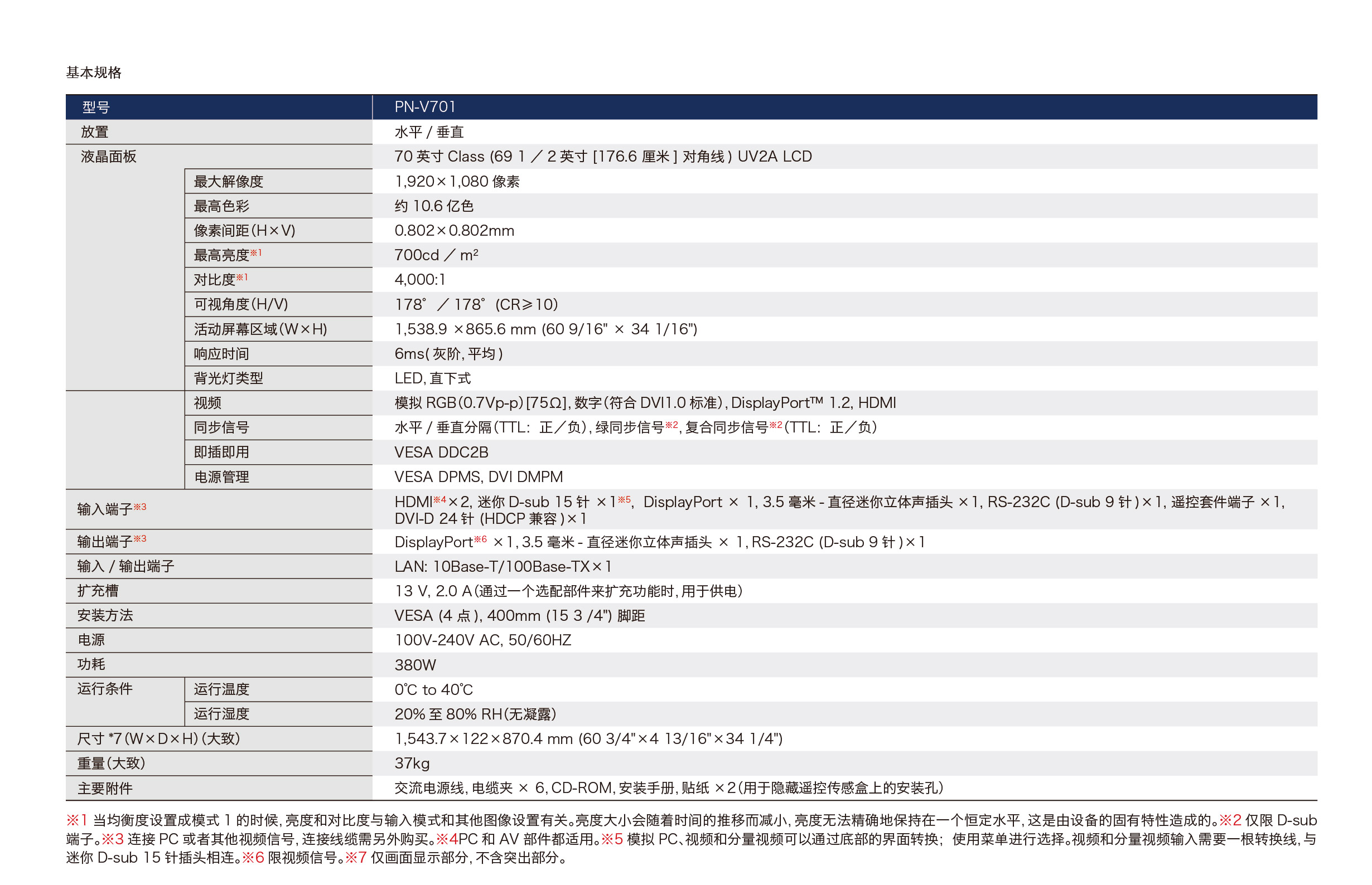 PN-V701 的專業(yè)品質適合全天不間斷使用,并能應對嚴苛的操作環(huán)境。可用于 7X24小時開放的多種場合
