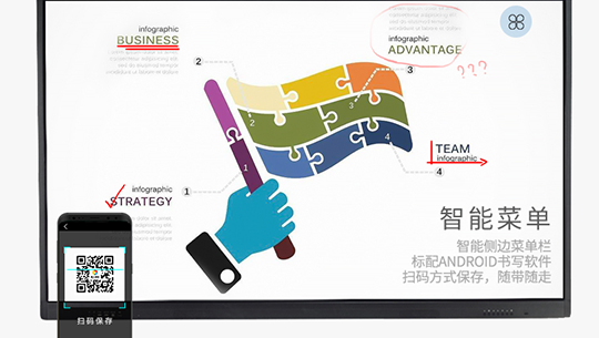 智能菜單,全通道批注、智能側(cè)邊菜單欄,簡單手勢快速調(diào)出,操控便捷、標配Android書寫軟件,隨心標注郵件、掃碼方式保存,隨帶隨走