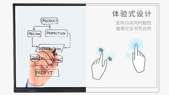 多點觸控,體驗式設計、支持10點同時觸控,實現(xiàn)多人流暢操作、窗景交互書寫自然