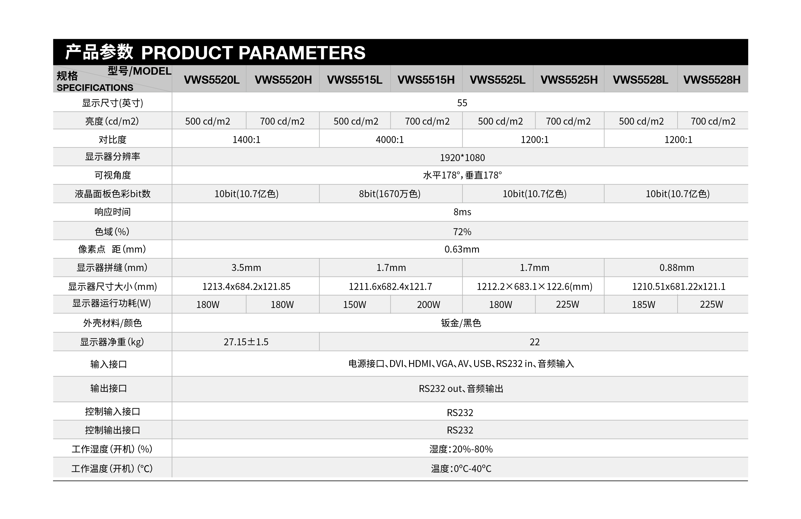 輸入端支持全數字接口,包括HDMIVGADVI、AV等,眾多場景均可適用