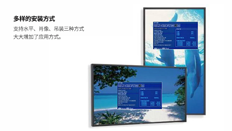 水平、肖像、吊裝三種安裝方式大大增加了應(yīng)用方式及顯示效果
