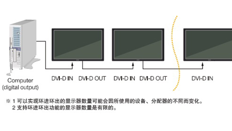 V系列顯示器支持遙控串聯(lián)功能,通過(guò)NEC的有線遙控輸入輸出接口,將顯示器用遙控線連接起來(lái),可以每臺(tái)顯示器自動(dòng)分配ID號(hào)碼設(shè)置,最大支持100臺(tái),既可以實(shí)現(xiàn)所有顯示器的共同遙控,又可以由遙控器對(duì)單獨(dú)的顯示器進(jìn)行控制和調(diào)整。?