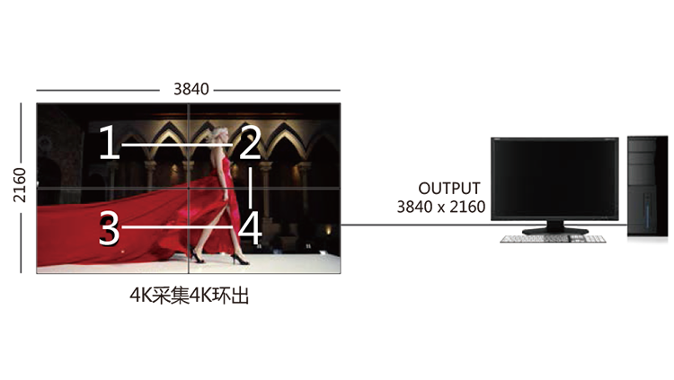采用最新的 DisplayPort 1.2 和 HDMI1.4 標(biāo)準(zhǔn)數(shù)字 視頻接口,支持每路 4K 信號(hào)源采集。在 2x2 視頻墻上可以實(shí)現(xiàn) 4K 物 理分辨率點(diǎn)對(duì)點(diǎn)的顯示。